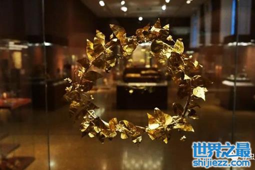 金属制品展区多为一些造型精美的小件物品,比如公元前四世纪的黄金花冠和公元前三世纪的带阿耳忒弥斯胸像的黄金发网。