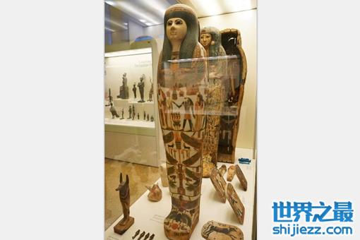 古埃及当然少不了木乃伊,这个木乃伊棺材上绘制的是阿蒙神的女吟唱者。