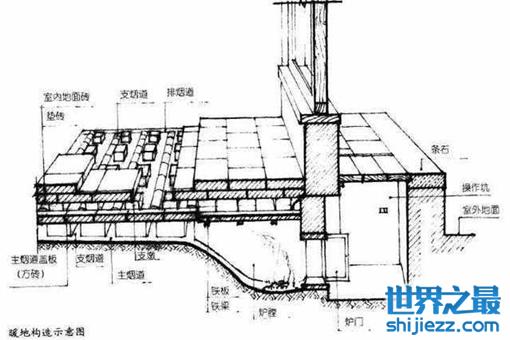 那么,何为暖和呢?简而言之,殿内的地面和炕面都是可以加热的取暖滴,有点类似于现在东北过冬的两样法宝:地热和火炕。通过下面的《暖地构造示意图》,可以帮助大家了解地暖的基本情况。