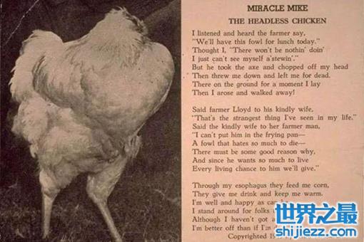 实际上在70多年前,这里还真出了个无头鸡。它被主人砍掉了头颅之后还奇迹般地活了18个月,成了当时的全美“网红”。