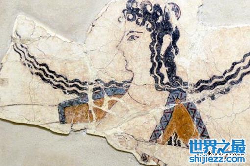 米诺斯文明时期克里特岛首府克诺索斯的壁画上,一个正在跳舞的米诺斯女性