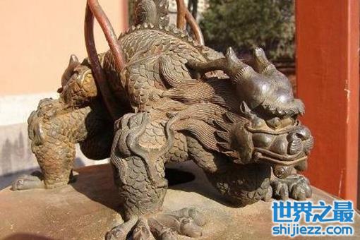 它头和自己的老爹像,不过后身是鱼形,嘴巴长得大,能够喷出大浪来,所以,古人经常把它的雕像立在屋脊上,寓意消除火灾,平平安安。