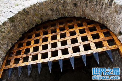 像“portcullises ”就是一种用金属加固的木制格栅,它们能有效阻挡敌人的进攻,并且让守城官兵可以肆无忌惮地在格栅后边“捅捅捅,杀杀杀”。