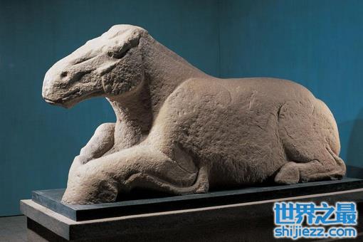 属东汉,1969年在甘肃武威雷台的东汉墓面出土。铜奔马又名“马踏飞燕”、“马超龙雀”,身高34.5厘米,身长45厘米,宽13厘米。按古代相马经中所述良马的标准尺度来衡量铜奔马,几乎无一处不合尺度,故有人认为它不仅是杰出的艺术品,而且是相马的法式。