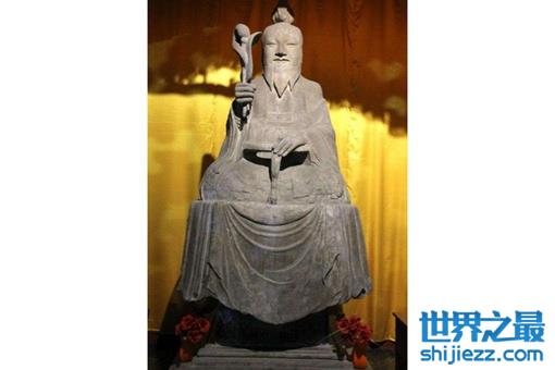 属唐代,山西省运城盐湖区安邑镇道观遗物。像高150厘米,以白石雕造,形象丰颐,神态和穆。右手持扇,左手扶几,盘坐于长方石座上。座的四面刻有铭文及供养人姓名。