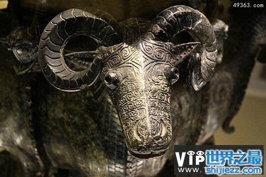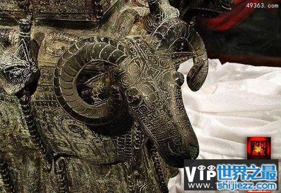 四羊方尊,商朝晚期青铜礼器,祭祀用品。1938年出土于湖南宁乡县黄材镇月山铺转耳仑的山腰上。收藏于中国国家博物馆。国家第三批禁止出境展览文物。