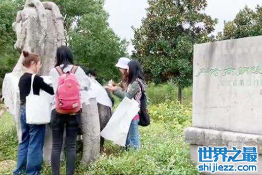 一群大学生在未向当地文物部门申请的情况下,非法拓印位于江苏省丹阳市的国家重点文物保护单位南朝齐梁时期帝王陵墓石刻群,这一幕被当天恰好赶去寻访石刻的一位游客拍到。