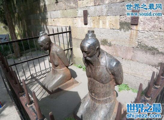 岳飞墓前的四个铁人