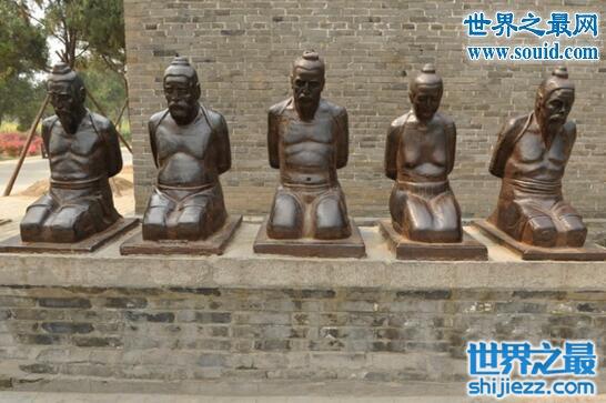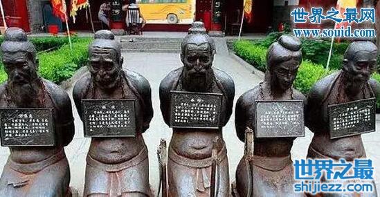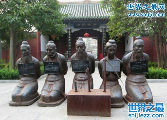 岳飞墓前的四个铁人