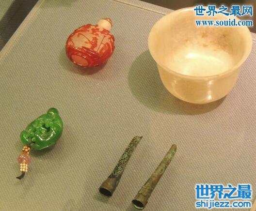 1966年,大太监李莲英墓被“造反派”们发现砸开,在墓中发现了许多价值连城的陪葬品。其中的一颗钻石帽饰,比英国女王伊丽莎白戴的那颗还大,另外还有三件宝物:汉朝的青玉土浸剑、满黄浸玉镯,宋代的青玉褐浸环,都堪称无价。
