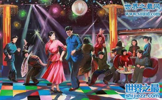 对,你没有看错,朝鲜人眼中的中国舞厅就是这个样子的。这个装束,真的不是上个世纪五十年代的夜上海吗?不对,那时候的夜上海也比图中时尚的多啊!