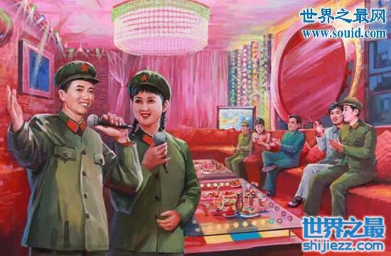 嗯,朝鲜人眼中的中国歌厅和舞厅也是一个画风,不过全是军人拿着话筒唱歌是什么鬼?