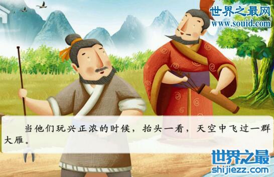 “啊!”魏王看了,大吃一惊,“真有这本事!”更羸笑笑说:“不是我本事大,是因为我知道,这是一只受过箭伤的鸟。”魏王更加奇怪了,问:“你怎么知道的?”
