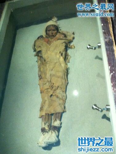 在挖掘出来的楼兰女尸中,保持最完整的就是那几具少女干尸。干尸是盛放在由两块掏空的树干制成的棺木中,外面用羊皮包裹着。打开棺木,楼兰女尸仿佛是在安睡中,头戴尖顶毡帽,身裹毛线毡毯,脚穿补过的皮靴。