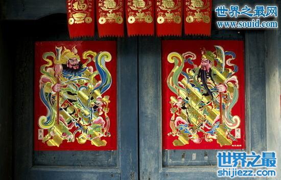 唐朝以后,除了以往的神荼、郁垒二将以外,人们又把秦叔宝和尉迟恭两位唐代武将当作门神。相传,唐太宗生病,听见门外鬼魅呼号,彻夜不得安宁。于是他让这两位将军手持武器立于门旁镇守,第二天夜里就再也没有鬼魅骚扰了。其后,唐太宗让人把这两位将军的形象画下来贴在门上,这一习俗开始在汉族民间广为流传。