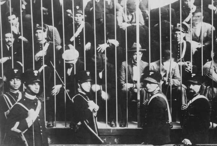 【图1】20世纪初,一群西西里岛的黑手党成员被全副武装的警察关进了监狱。