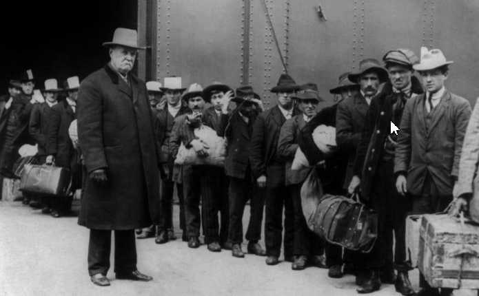 【图3】抵达纽约达埃利斯岛,等待登记入境的移民。