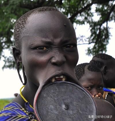 在苏丹南的Surma,女孩开始成年时,就开始拉伸她的唇部。女孩们的下牙会被移除,为唇板留出充足的空间,而且唇板的尺寸每年都会增加。看着都疼啊。