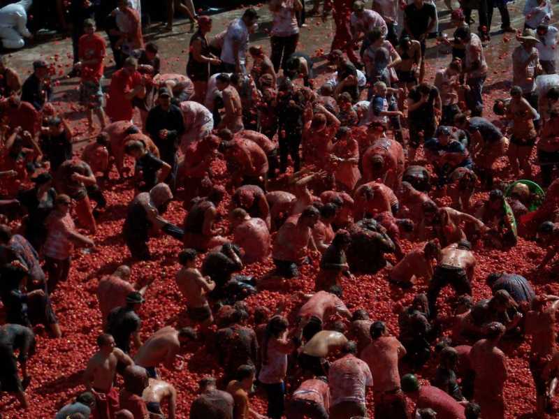 这个奇怪的习俗可以追溯到1945年。在那时是举办巨人和大脑袋的游行,一群朋友试图在与会者中站稳脚跟。但是他们没站稳,摔倒了,在广场附近有一个蔬菜摊和有些人开始扔西红柿。慢慢地人们被感染并加入了战斗。第二年,这些年轻人又重复了一遍,这一次他们从家里带走了西红柿。多年后,这一传统已成为西班牙最著名的传统之一。