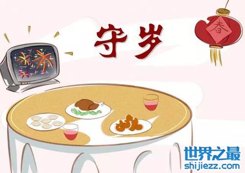 古时南北风俗各异,古时北方守岁习俗主要为“熬年夜”,如晋朝周处所著的《风土记》中说:除夕之夜大家各相与赠送,称“馈岁”;长幼聚欢,祝颂完备,称“分岁”;终岁不眠,以待天明,称“守岁”。有的地方在除夕之夜,全家团聚在一起,吃过年夜饭,点起蜡烛或油灯,围坐炉旁闲聊,通宵守夜,象征着把一切邪瘟病疫照跑驱走,期待着新的一年吉祥如意。