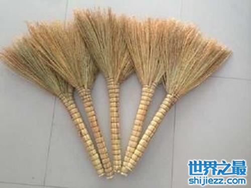 扫帚用的原材料有高梁穗、金丝草、竹梢、扫帚草等。家用通常是塑料扫帚。