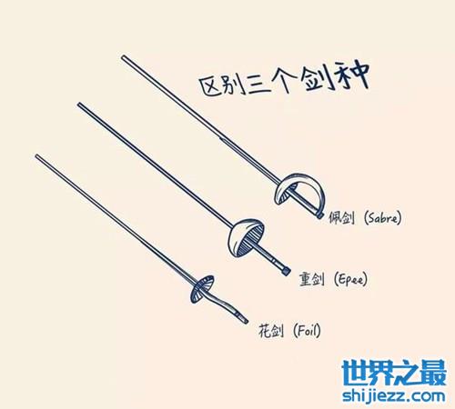 击剑运动有三个剑种:重剑、花剑、佩剑。三个剑种的有效击中点及比赛规则亦有不同,故每个剑种都有其竞技特点。相比而言,重剑更具运动性,佩剑速度最快,花剑更需要技巧和准确性。