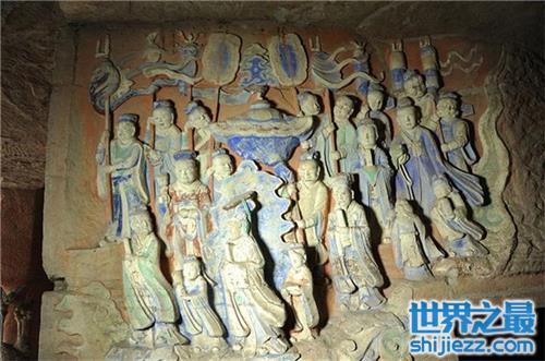以北山、宝顶山、南山、石篆山、石门山(简称"五山")摩崖造像为代表的大足石刻是中国石窟艺术重要的组成部分,也是世界石窟艺术中公元九世纪末至十三世纪中叶间中国晚唐景福元年至南宋淳佑十二年最为壮丽辉煌的一页。大足石刻始建于公元650年唐永徽元年,兴盛于公元九世纪末至十三世纪中叶,余绪延至明、清,是中国晚期石窟艺术的代表作品。