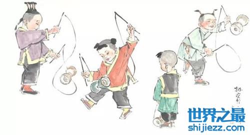 清代一位不知名的人所著的《燕京杂记》在记述当年京师空竹的制法、玩法时这样说过:“京师儿童有抖空竹之戏,截竹为二,短筒中作小千,连而不断,实其两头,窍其中间,以绳绕其小干,引两端而擞抖之,声如洪钟,甚为可听。”