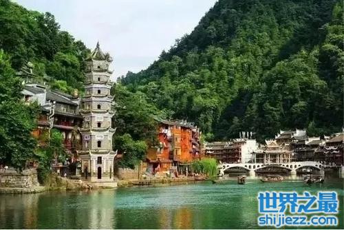 万名塔,位于凤凰古镇城东青龙山麓沙湾黄土坎的沱江之滨,东靠雕梁画栋的遐昌阁,西望气势若虹的风雨桥,建立在字纸炉的遗址上。由著名画家黄永玉于1985年倡议,群众集资,政府扶助,于1988年建成,故名万名塔。