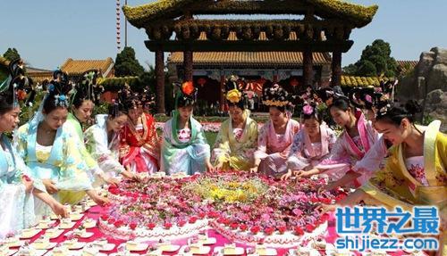 制作花糕:采集百花,和米一起捣碎,蒸制成糕。传说始于武则天执政时期。武则天嗜花成癖,每年夏历二月十五花朝节这一天,她总要令宫女采集百花,和米一起捣碎,蒸制成糕,用花糕来赏赐群臣。这种糕有着花瓣的馥郁和谷物的芬芳,很快就上行下效,从官府到民间就流行花朝节活动。这也是食花糕的由来。