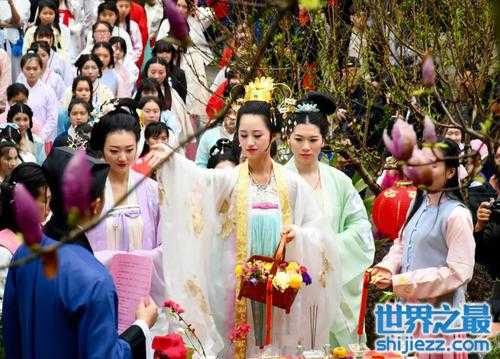 女孩贴红纸红线或五彩纸,绸带在花枝上,即献给花神的礼物来装扮花神,凭自己的喜好装饰花树打扮的越漂亮者为魁,边祈福,边赏花。