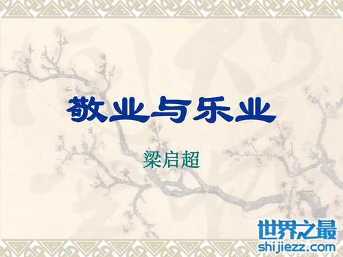 《敬业与乐业》是近代文学家梁启超于1922年8月创作的一篇演讲稿。全文可分为三个部分。第一部分,提出问题,揭示全篇论述中心——敬业和乐业。第二部分,论述敬业和乐业的重要:有业之必要;敬业之重要;乐业之重要。第三部分,总结全文,勉励人敬业乐业。全文主旨鲜明,层次清晰,语言通俗,文短意长。