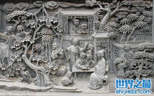 徽州砖雕图案内容很广泛,人物、山水、花鸟、走兽、八宝博古,几何形体,文字等方面,可谓无所不包。