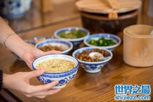 安化县的擂茶稠如粥,香中带咸,稀中有硬,通俗地说,就像一香喷喷的稀饭。每碗擂茶里面,有嚼的,有喝的,喝上一碗,就是一餐不再吃饭,也不会觉得饿。因此,如果说你有机会去湖南省的安化县,有谁家请你去喝擂茶,你最好是空着肚子去。