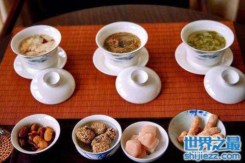 喝秦人擂茶一要趁热,二要慢咽,只有这样才会有“九曲回肠,心旷神怡”之感;湖南的桃江擂茶是芝麻和花生为主,放入碾钵里擂碎,后用白开水冲泡,再放点白糖。擂茶制成后稠粘如糊,色呈淡咖啡色,香气扑鼻,入口滑溜柔润、甜爽。制法大致和桃源相同,只是在吃法上各有不同。