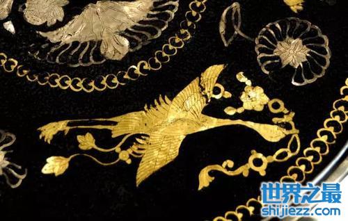 金银花纹面较宽的地方还可以雕刻细纹,但不能刻透金银片。这种装饰法,精细费工,材料高贵,但金银宝光与漆色的光泽相互辉映极为华丽,是十分贵重的漆器。《酉阳杂俎》、《安禄山事迹》、《太真外传》、《唐语林》等,都有关于唐玄宗、杨贵妃赐给安禄山的各种平脱漆器名目的记载。