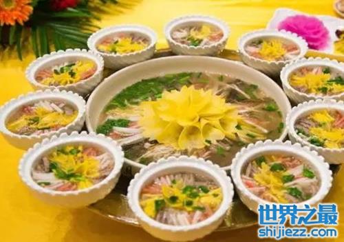 所谓"水席"有两个含义:一是全部热菜皆有汤-汤汤水水;二是热菜吃完一道,撤后再上一道,像流水一样不断地更新。