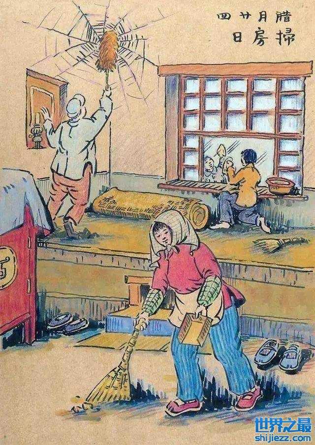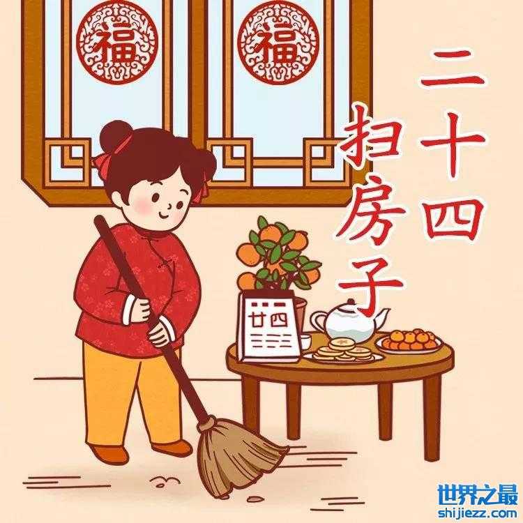 在腊月的民俗中,往往会在腊月二十四大扫除。民间的老祖宗认为“尘”与“陈”是谐音,所以大扫除,就意味着“除尘布新”。还有将“晦气”、“穷气”都扫除出门的美好寓意。
