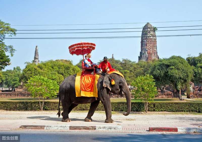 在一些大城市里,偶尔会看到有人带着大象在街道行走,是非常特色的泰国风情之一。
