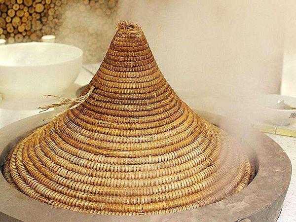 云南竹林较多,因此许多用具都以竹子为原料,而锅盖就形似于内地的斗笠,只是顶略小一点,便于抓拿,而且用此做锅盖,透气保温,做出来的饭更加清香。这样的菜你要不要尝一尝?