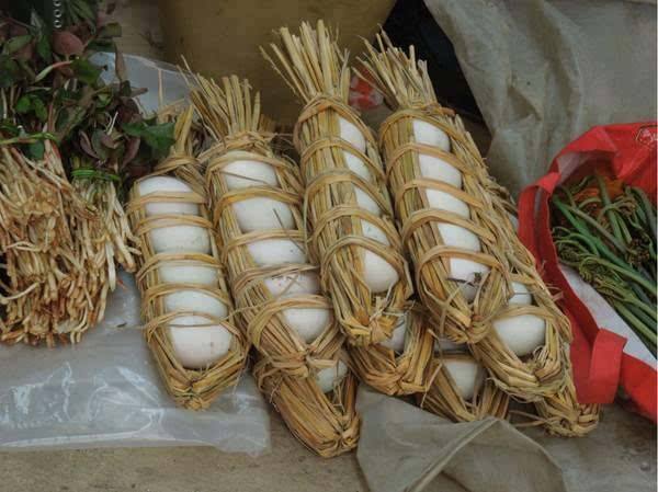 云南多山,山路崎岖而云南又少用塑料制品,为了方便买主携带,云南人民就发明了用草将鸡蛋包装起来,美观又方便,怎么样?比超市的鸡蛋更漂亮美观节能环保吧?