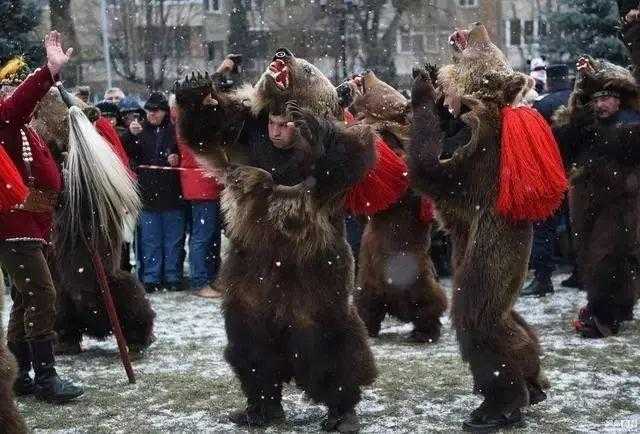 在罗马尼亚的Comanesti,当地民众会在新年前夜身披熊皮,在街上跳舞,借此驱除恶魔,迎接新年。
