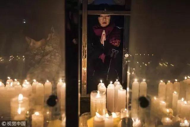 韩国首尔当地民众在新年来临之际,会去佛教寺庙点蜡烛祈祷,迎接新年。