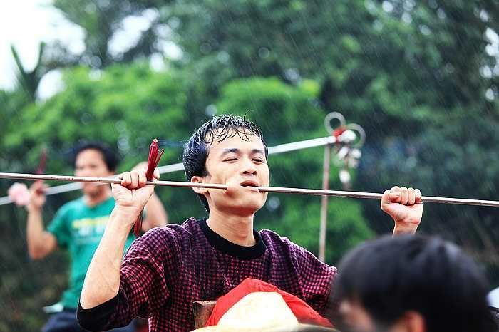 1.穿杖,穿杖是海南军坡节的活动之一。军坡节是海南东北部市县民间最大规模的祭祀节日。祭祀神为南北朝时期南方女英雄冼太夫人。穿杖表演一开场,顿时锣鼓喧天,场面极其壮观。围观者使劲喧哗鼓掌,欲穿杖者头绑红绳,手执短香,在烈日下舞动,请“神”附身,在热闹的气氛中逐渐呈现亢奋之状,念出一些外人听不明白之语,最后在近乎狂痴状态时,自己在众人助威帮助下缓缓将钢筋穿过腮帮,之后才逐渐平静下来,众星捧月般被抬上神椅开始巡游。