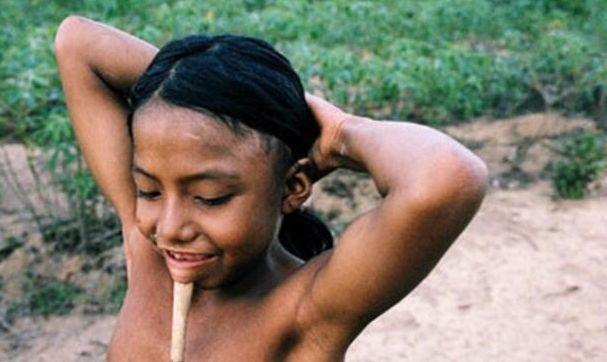 这一习俗比长颈族更为残酷,其实最主要的原因还是因为他们过着与世隔绝的生活,他们常年赤身裸体,在成年之际就会在下巴插上常常的木棍。