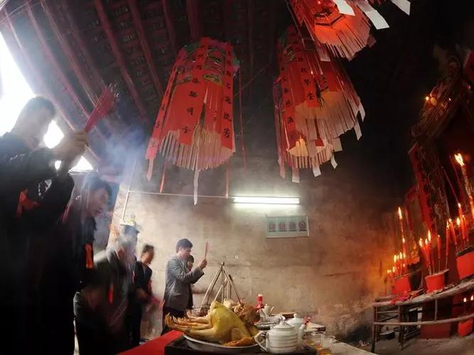 到上灯那天,我家对面的祠堂周围总是围满了人,大人,小孩,全部都跑去凑热闹。而我以前最喜欢挤到祠堂里面排队,因为可以早一点领到吃的。一般都是妇女们挑着放满了一袋袋吃的箩筐,一路排着队来到祠堂,她们先担进去拜祖先,外面还要打“墩子”,就是那种点火会发出巨大声响的那个东西,等他们放完鞭炮,她们就提着箩筐出来发东西,一人一袋。人人有份!哪怕你是个过路的,也能领到。