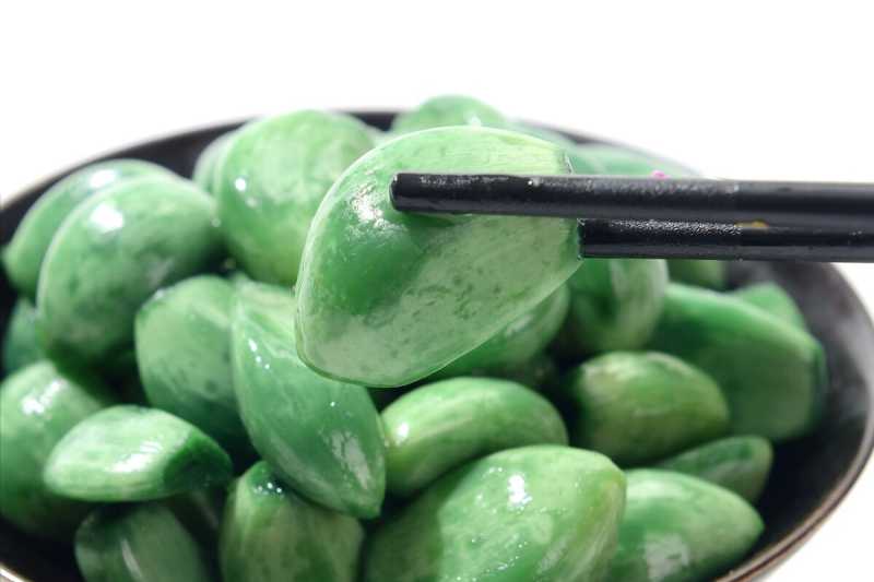 泡腊八蒜是我国华北地区的一个习俗,在腊月初八这一天,将去了皮的蒜瓣放入容器中,倒入米醋,封上口,置于阴凉处,慢慢地,泡在醋中的蒜就会呈碧绿色,蒜辣醋酸香溶在一起,吃起来香而不辣,还能促进食欲。