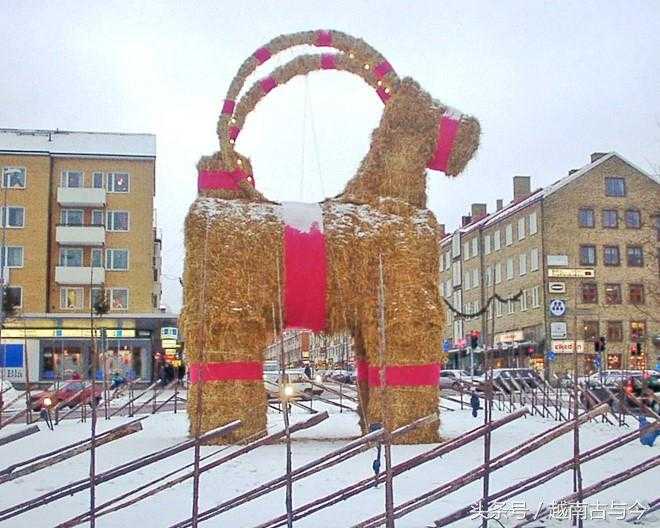 瑞典烧稻草羊:每年瑞典耶夫勒人会在圣诞前把13米高的稻草山羊会架设在耶夫勒的广场中间,成为圣诞节即将来临的象征。不过在圣诞节之前,必须要把山羊烧掉。1966年以来,山羊仅有10次逃过了在圣诞节前被烧掉的命运。今年11月27日稻草山羊就被烧毁了,这已经是瑞典人第30次烧掉圣诞山羊了。