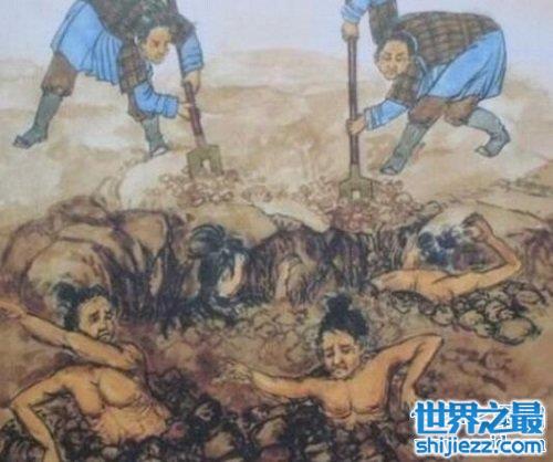晋潘岳 《西征赋》:“ 秦始皇 之为君也,倾天下以厚葬,自开辟而未闻。匠人劳而弗图,俾生埋以报勤。”《法苑珠林》卷五八:“一臣言,但随师所语,掘地作深坑而生埋之。” 宋 洪迈 《容斋续笔·秦隋之恶》:“ 始皇 葬於 骊山 ,下锢三泉,多杀宫人,生埋工匠,计以万数,天下苦其役而反之。”