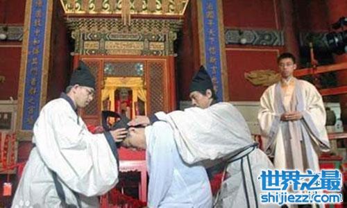 举行冠礼仪式是非常讲究和慎重的。据《仪礼。士冠礼》上所载,贵族男子到了二十岁,由父亲或兄长在宗庙里主持冠礼。行加冠礼首先要挑选吉日,选定加冠的来宾,并准备祭祀天地、祖先的供品,然后由父兄引领进太庙,祭告天地、祖先。